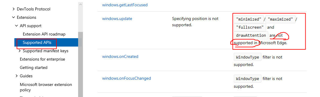 https://docs.microsoft.com/en-us/microsoft-edge/extensions/api-support/supported-apis#windows
